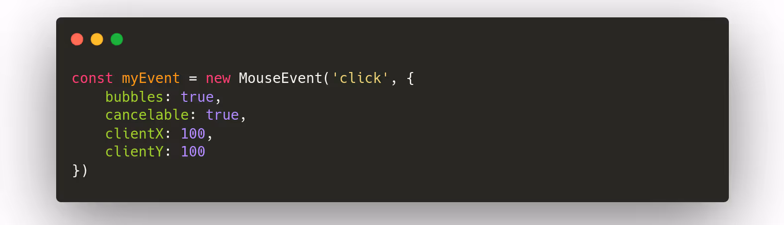 In this case, only bubbles and cancelable properties work if you log event.clientY you’ll get undefined.